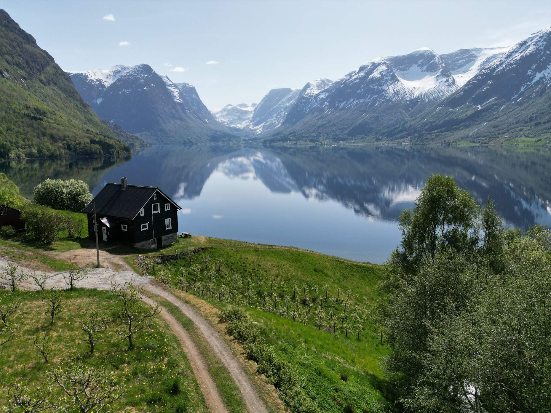 Flo Lake House ligger unikt til ved Oppstrynsvannet i Stryn. Her bor du omgitt av majestetisk natur, og kan finne roen og nyte stillheten med lyden av elvesus og bølgeskvulp rundt. Fra huset har du utsikt over det smaragdgrønne Oppstrynsvannet og høye, snødekte fjell og brearmer fra Jostedalsbreen.